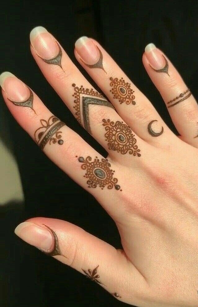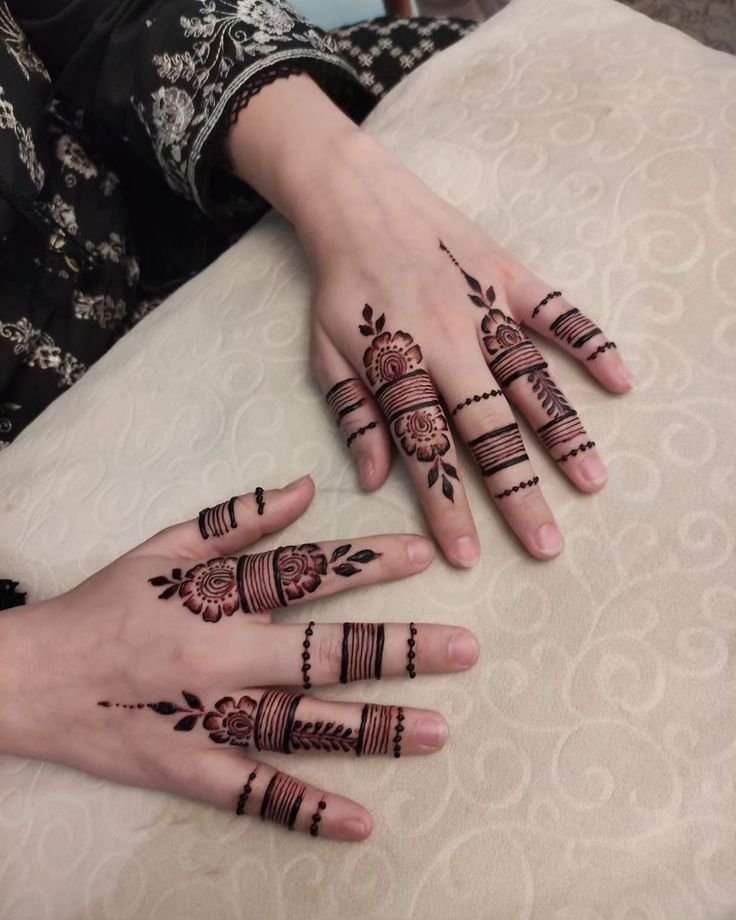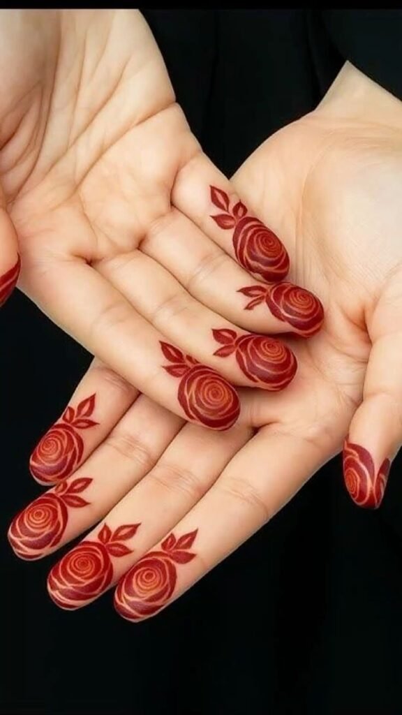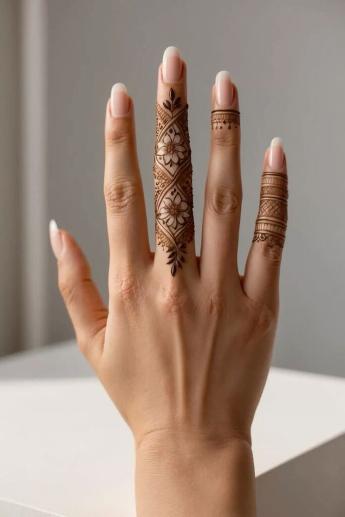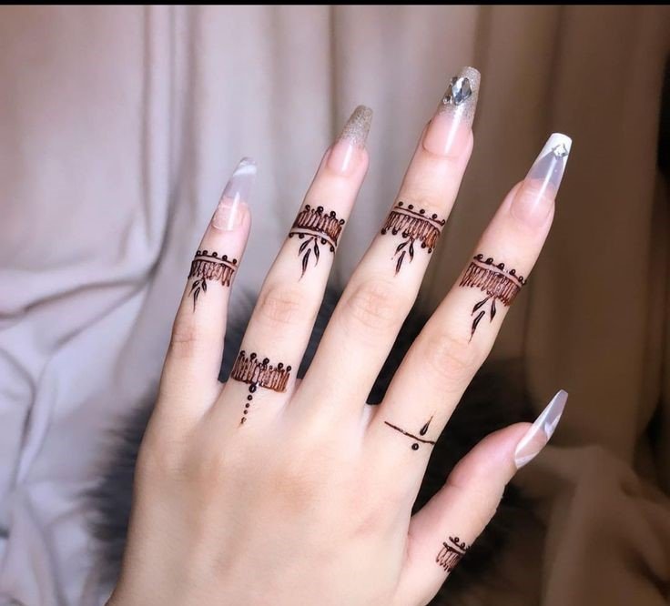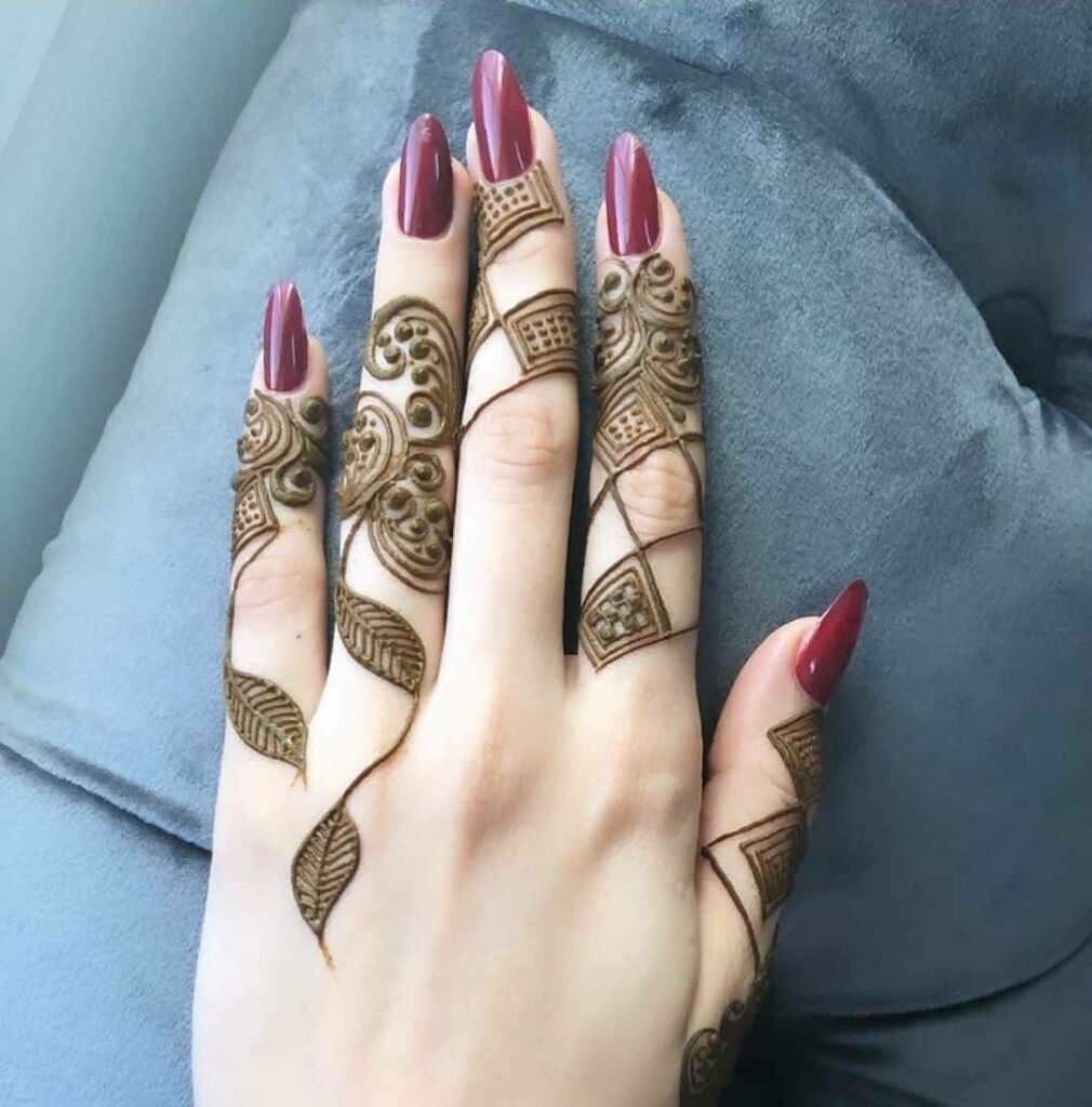 Finger mehndi designs feature fine and detailed patterns that enhance the beauty of the fingers. These designs often include simple florals, dots, and lines for a modern appearance. They are ideal for both casual events and special occasions.