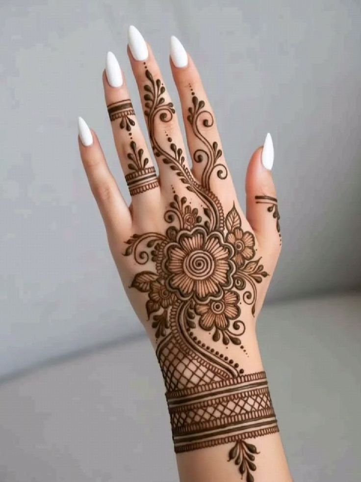 Simple Back Hand Mehndi Designs for Engagement