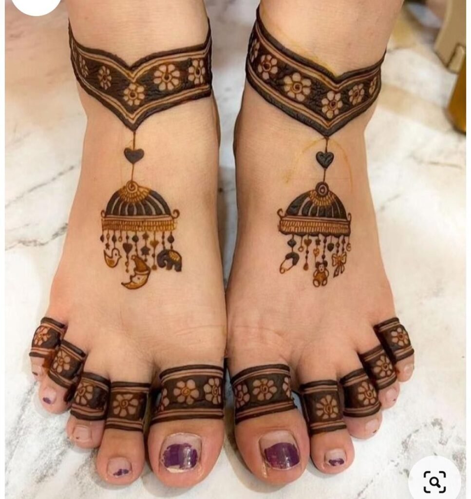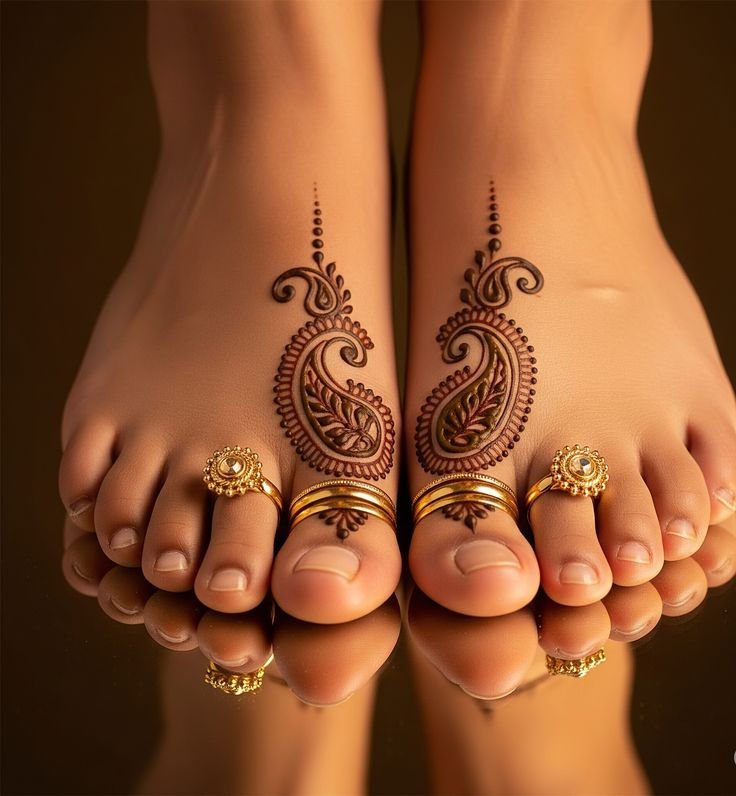 Small anklet-style patterns, toe designs, and side motifs look graceful and trendy.