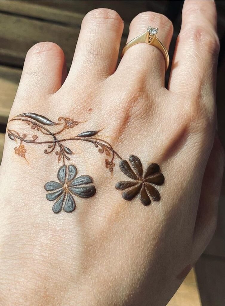 Simple vines, leafy trails, or geometric patterns on the back hand are perfect for parties and engagements.